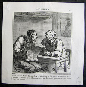 - On parle d'faire d'nouvelles élections. - C'te fois avant d'donner not' voix à un des candidats, nous l'ferons visiter par l'médecin pour qu'ensuite on n'le déclare pas invalide.