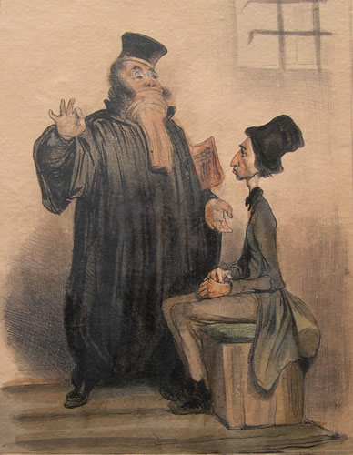Mon cher Bertrand, donnes moi cent écus, je te fais acquitter d’emblée. – J’ai pas d’argent. – Hé bien donnes moi 100F - pas le sou - tu n'as pas dix francs?.... pas un liard! alors donnes moi tes bottes je plaiderai la circonstance atténuante.